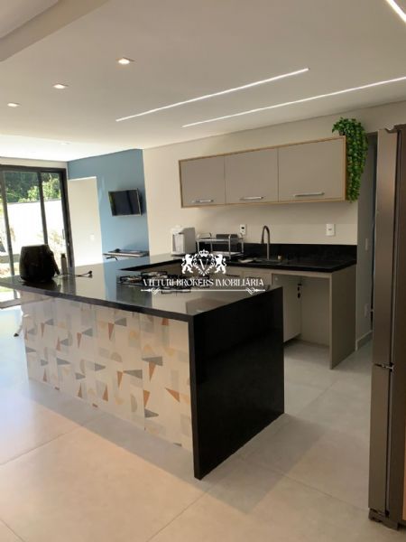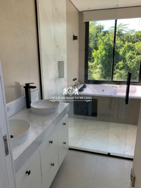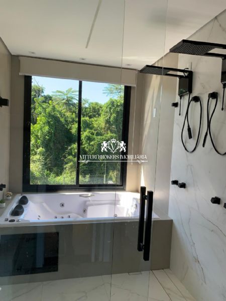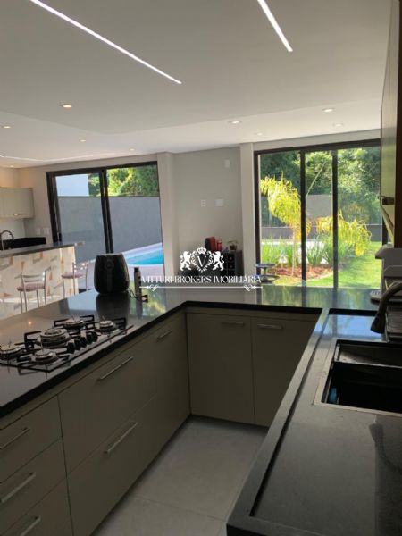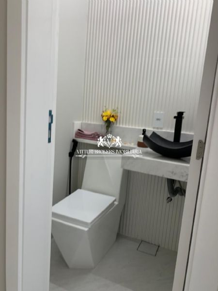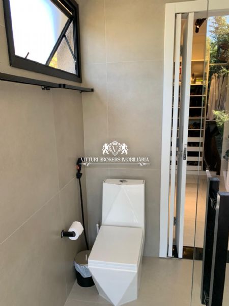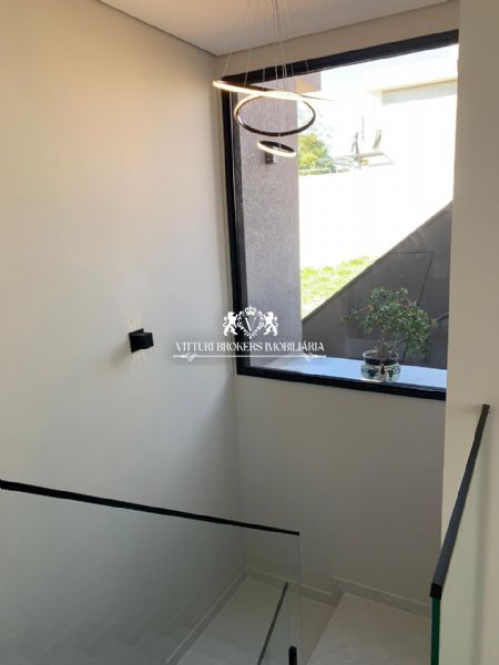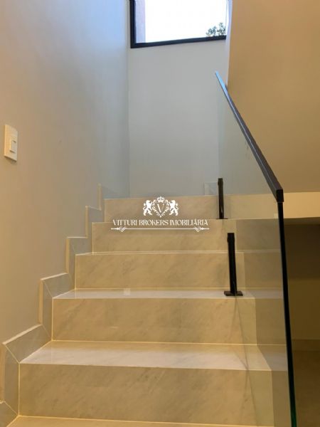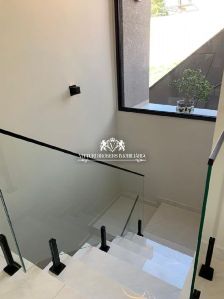 Acabamentos sofisticados: Pintura projetada em toda parte externa. Porcelanato de alta qualidade (120x120) em todos os ambientes. Ralos ocultos, que unem funcionalidade e estética.Iluminação em fita LED e lustres deslumbrantes, como na descida da escada e sala de jantar. Corrimão e guarda corpo em vidro temperado, assim como o fechamento do fundo da casa.