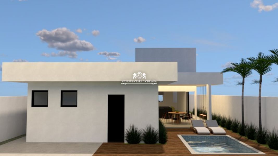 Casa TERRÉA em CONSTRUÇÃO, entrega em JUNHO/26 no CONDOMÍNIO PARQUE DAS CAMÉLIAS com 3 suítes, 4 vagas de garagem, piscina com preparação para aquecimento, ponto para carregador de carro elétrico.