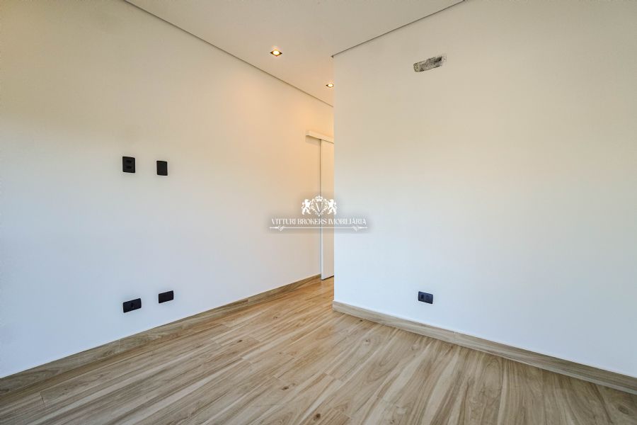 Suítes com infraestrutura para ar condicionado, piso em porcelanato, teto em gesso com spots LED.