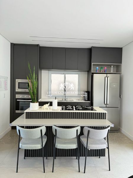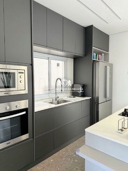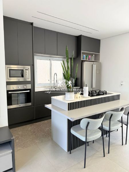 A cozinha é completa e funcional, equipada com forno e micro-ondas embutidos (Tramontina), geladeira 3 portas (Brastemp) e fogão embutido (Electrolux), ideal para quem gosta de praticidade e elegância no dia a dia.