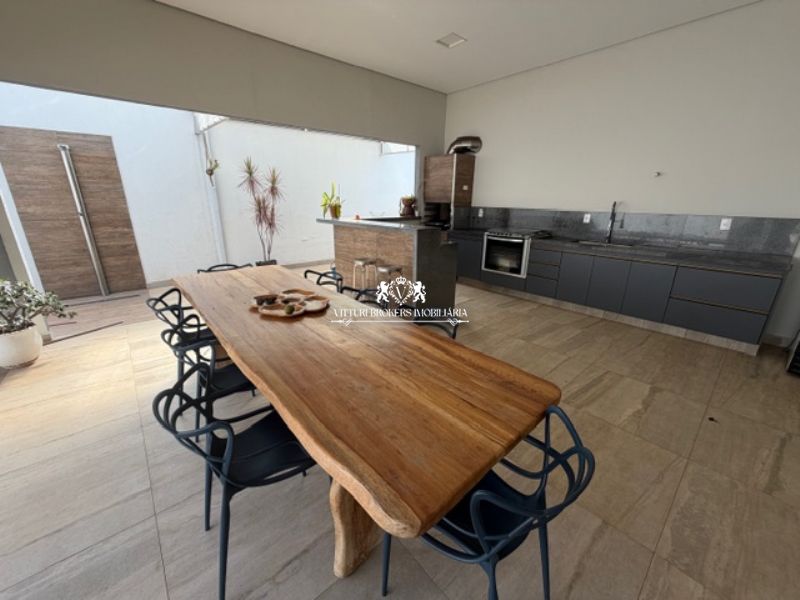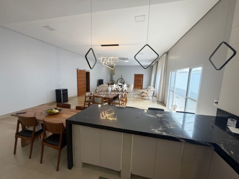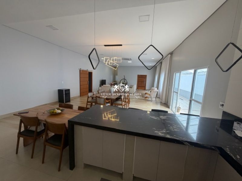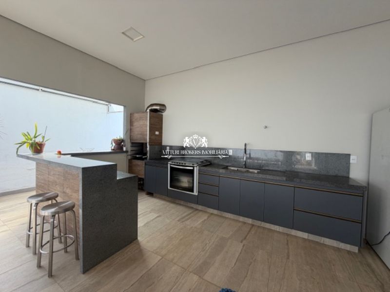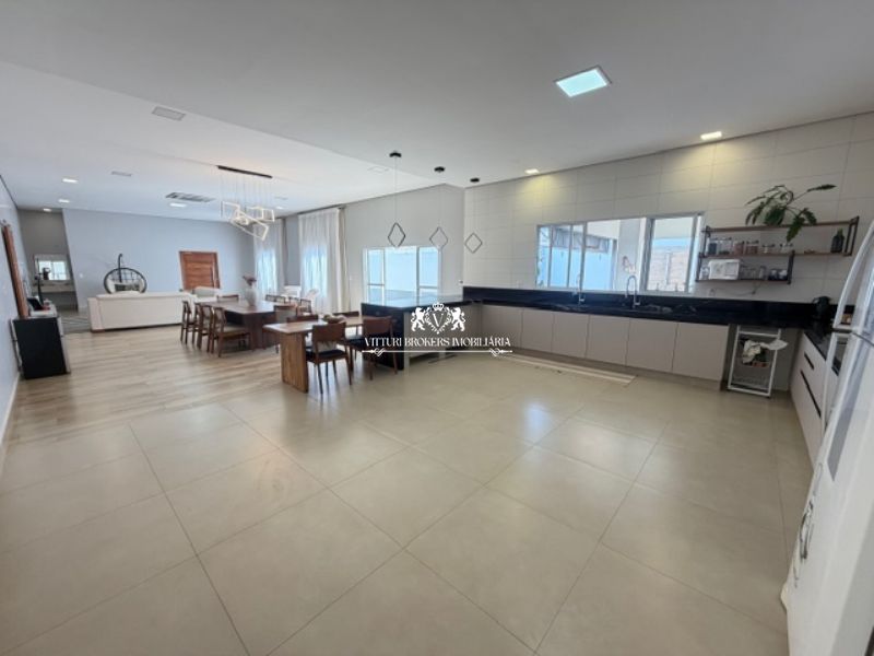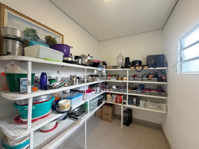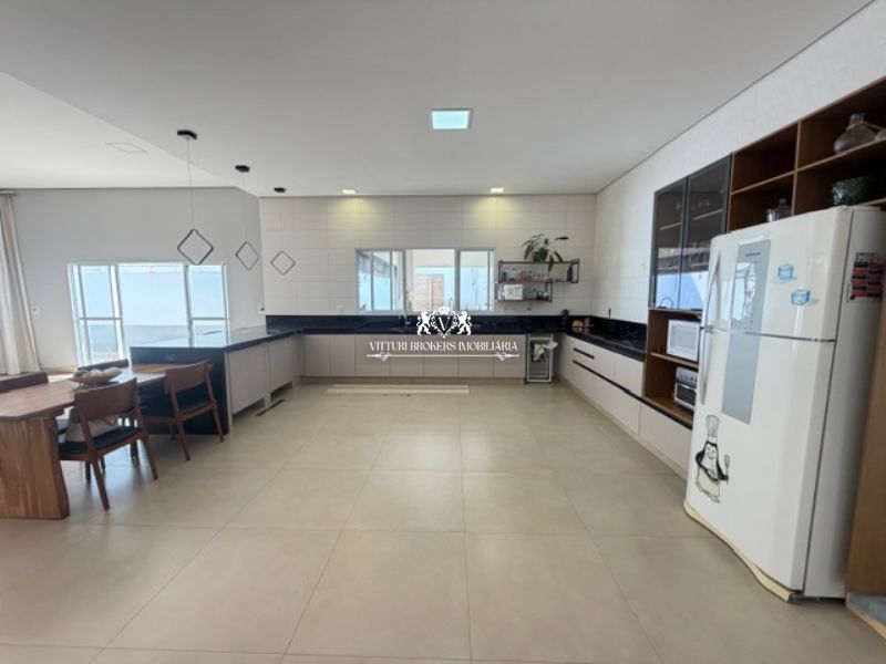 Ótima cozinha americana com armários planejados, conjunto pia/bancada em granito preto, 2 cubas inox com misturadores, piso em porcelanato e luminárias LED. Grande despensa.
