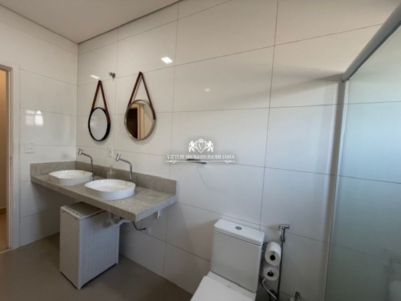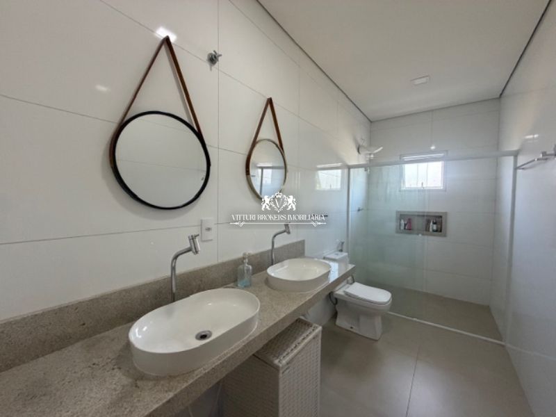 Banheiros completos com piso em porcelanato, box.